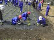 5月2日に、せらひがし小学校の児童、小谷スポーツクラブのみなさん、伊尾・小谷たえクラブのみなさんと、せらひがし小学校の校章の形になるようにシバザクラを植えました。